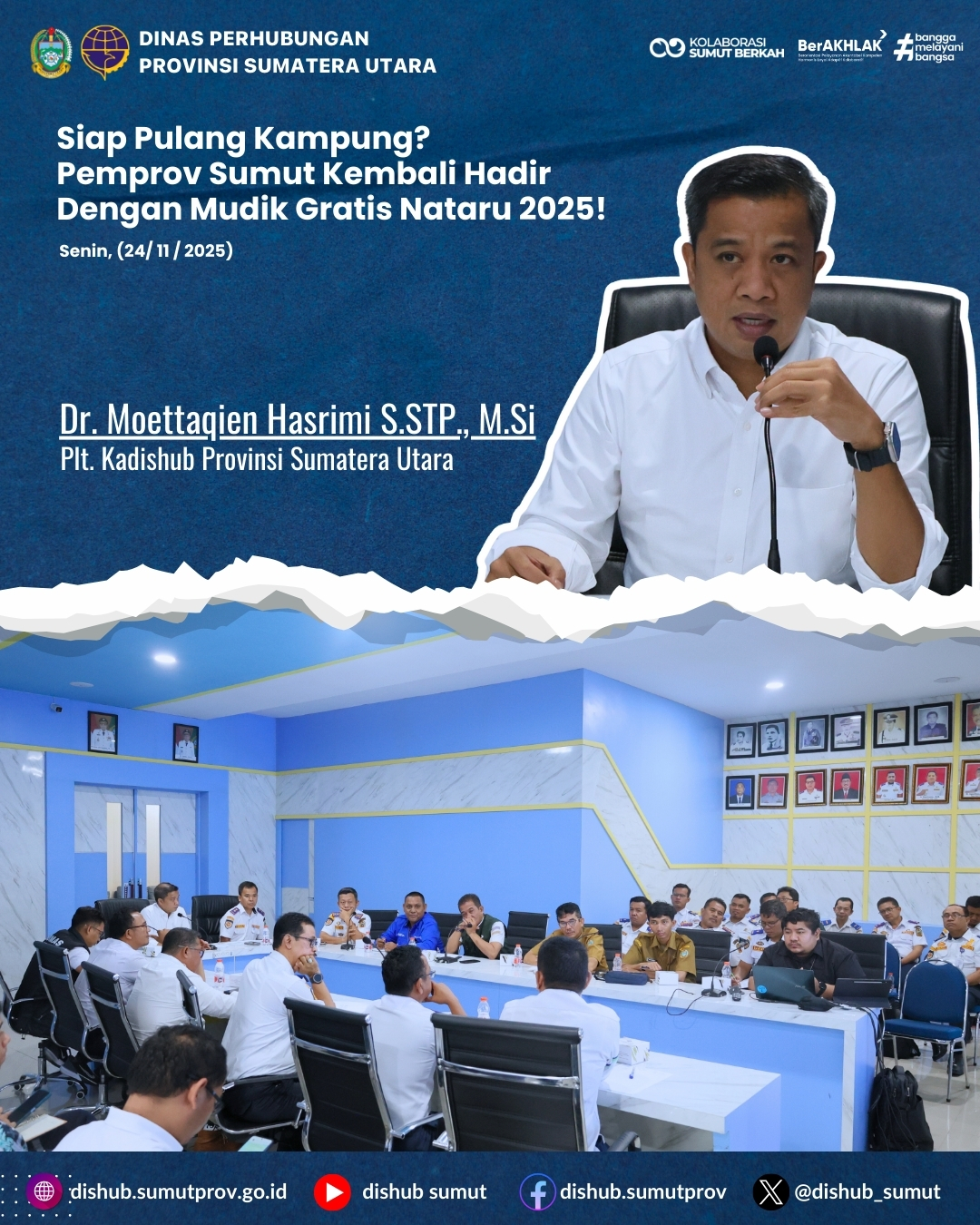 Persiapan program ini telah dibahas dalam rapat kesiapan mudik Nataru yang digelar di Command Centre Room Kantor Dishub Sumut, Senin (24/11/2025). Rapat dipimpin Plt Kadishub Sumut, Moettaqin Hasrimi, dan digelar secara hybrid via Zoom. Hadir dalam rapat antara lain BPTD, Dishub kabupaten/kota, PT KAI Medan, PT WJL, ASDP, dan Inspektorat Sumut.