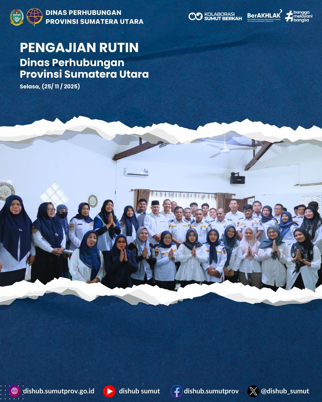 Medan – Dinas Perhubungan Provinsi Sumatera Utara melaksanakan kegiatan keagamaan rutin Pengajian Bersama H. Zulkarnaen Nasution, S.Sos, bertempat di Lantai 2 Musholah Kantor Dishub Sumut. Selasa, (25/11/2025).