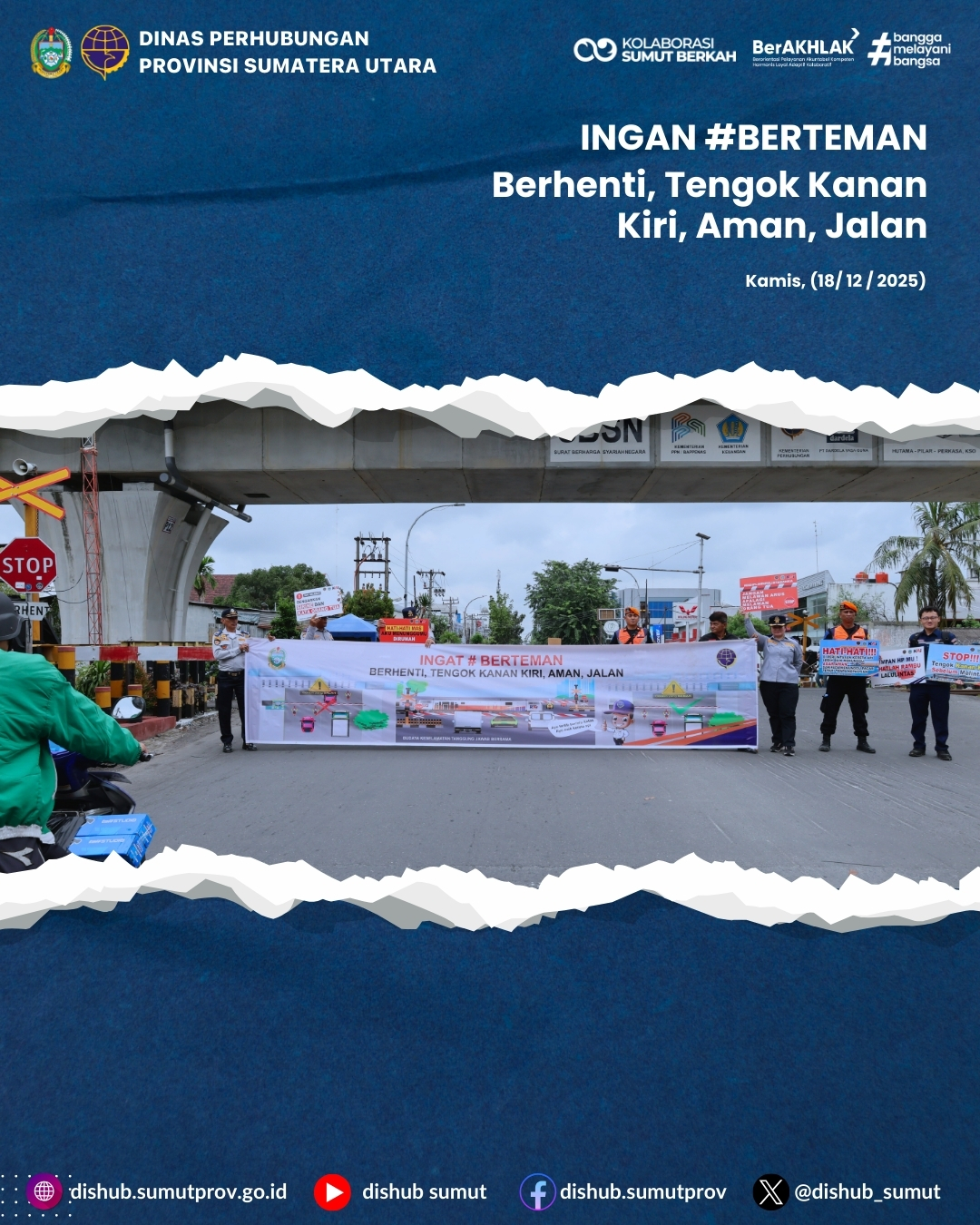 Dinas Perhubungan Provinsi Sumatera Utara melalui Bidang Perkeretaapian dan Pengembangan melaksanakan Sosialisasi Keselamatan Berlalu Lintas di Perlintasan Kereta Api Jelang Natal 2025 dan Tahun Baru 2026 di beberapa dititik perlintasan di Kota Medan.