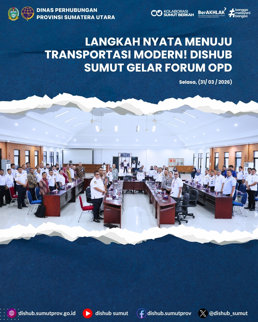 Kegiatan ini sekaligus mencerminkan komitmen Dinas Perhubungan Provinsi Sumatera Utara dalam mewujudkan tata kelola pemerintahan yang profesional, transparan, dan berorientasi pada hasil, guna mendukung pembangunan daerah yang maju dan berkelanjutan. Selasa, (31/03/2026). #KolaborasiSumutBerkah #SalamKolaborasi #SumutBerkah